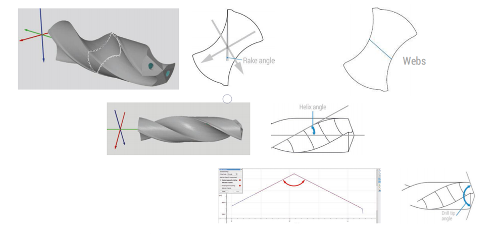 5.任意截面测量刀具的前角,梁腹,螺旋角,钻尖角等数值